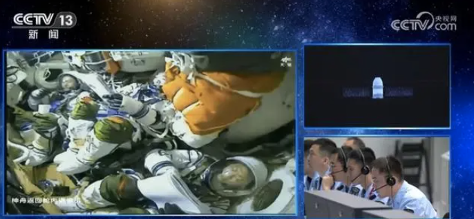 10月31日8时11分,神舟十六号载人飞船返回舱在东风着陆场成功着陆,现场医监医保人员确认航天员景海鹏、朱杨柱、桂海潮身体健康状况