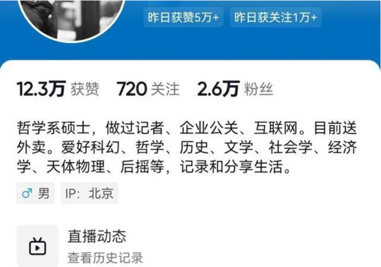 38岁男子名校毕业,如今失业送外卖。3月27日,一男子称自己985硕士毕业,曾在某报社担任记者,如今失业半年以送外卖为生,曾应聘道观道士,但